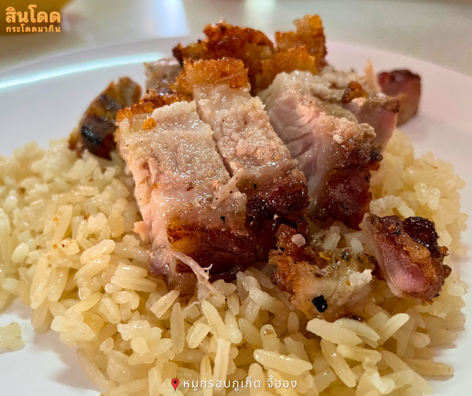 ร้านหมูกรอบภูเก็ต จี้ฮอง ร้านนี้จะเป็นการกินหมูกรอบในรูปแบบใหม่ คือกินกับ “ข้าวมัน” ซึ่งปกติเราจะชินกับการกินข้าวมันกับไก่ต้มมากกว่า แต่พอได้ลองข้าวมันกับหมูกรอบ บวกกับซอสสูตรพิเศษของทางร้านแล้วนั้น อร่อยและเข้ากันจนน่าแปลกใจเลย