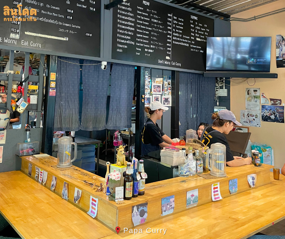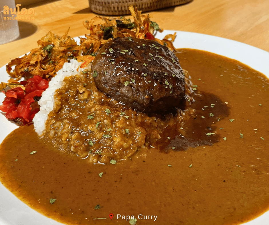 Papa Curry เมนูเด่นเลยก็คือ แกงกะหรี่ ที่เป็นสูตรเด็ด สูตรลับ ของทางร้าน และมีเนื้อสัตว์ให้เลือกเคียงมากมาย โดยเฉพาะ เนื้อวัวหั่นเต๋า ที่ทางร้านแนะนำมา ถือว่าเด็ดสมคำจริงๆ บรรยากาศร้านจะนั่งกินล้อมรอบตรงเคาเตอร์ ร้านเล็กๆไม่ใหญ่มาก แต่มีที่จอดรถให้บริการ