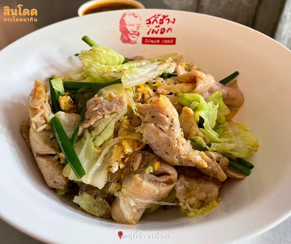 สุกี้ช้างเผือก สุกี้แห้งเจ้าดังที่มีจุดเริ่มต้นที่ตลาดช้างเผือก สิ่งที่ทำให้สุกี้แห้งของร้านนี้โดดเด่น และโด่งดัง คือ วุ้นเว้น เหนียวหนึบเด้งกำลังดี กับตัว ผัก ที่กรอบและสดใหม่ เมื่อกินรวมกันก็คืออร่อยทวีคูณ ควรค่าแก่การมากินซักครั้ง